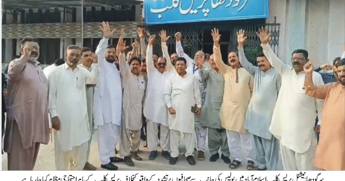 سرگودھا (ملک فضل) نیشنل پریس کلب اسلام آباد پر پولیس گردی اور غنڈہ گردی کے خلاف سرگودھا پریس کلب کے باہر صحافیوں نے شدید احتجاجی مظاہرہ کیا۔ اس موقع پر صحافیوں اور کیمرا مینوں کی بڑی تعداد نے شرکت کی اور حکومت و پولیس کے خلاف شدید نعرے بازی کی۔ مقررین نے کہا کہ اسلام آباد پریس کلب پر حملہ دراصل پورے ملک کے تمام پریس کلبز اور صحافیوں پر حملہ ہے، جسے کسی صورت برداشت نہیں کیا جا سکتا۔ انہوں نے واضح کیا کہ آزادی صحافت پر کسی قسم کی قدغن قبول نہیں کی جائے گی۔مظاہرے سے خطاب کرتے ہوئے صدر پریس کلب عبدالحنان چوہدری، جنرل سیکرٹری شیخ محمد رضوان، اسجد منیر چوہدری، مجاہدبخاری,میاں محمد الیاس، ایم احسان الحق، سلیمان معظم،ملک فضل جنجوعہ ،محمود ڈوگر، شیخ محمد عثمان،رانا افضل حنیف، بشیر شاد انصاری،تصور ملیانہ ،عقیل خان ، ملک شاہنواز جالپ ، عمران گوئندی اور دیگر مقررین نے کہا کہ صحافی برادری کسی بھی ادارے یا صحافی پر حملے کو اپنے اوپر حملہ تصور کرتی ہے۔انہوں نے کہا کہ آج کا احتجاج علامتی ہے، لیکن اگر نیشنل پریس کلب پر حملہ کرنے والے عناصر کو قانون کے مطابق سخت سزا نہ دی گئی تو احتجاج کا دائرہ کار وسیع کر دیا جائے گا اور ضرورت پڑنے پر پارلیمنٹ ہاؤس کے باہر بھی دھرنا دیا جائے گا۔مقررین نے کہا کہ آزادی صحافت کو دبانے کی ہر کوشش ماضی میں ناکام رہی ہے، تاریخ گواہ ہے کہ ایسے ہتھکنڈے استعمال کرنے والے ہمیشہ رسوائی کے ساتھ تاریخ کے اوراق میں دفن ہو جاتے ہیں۔